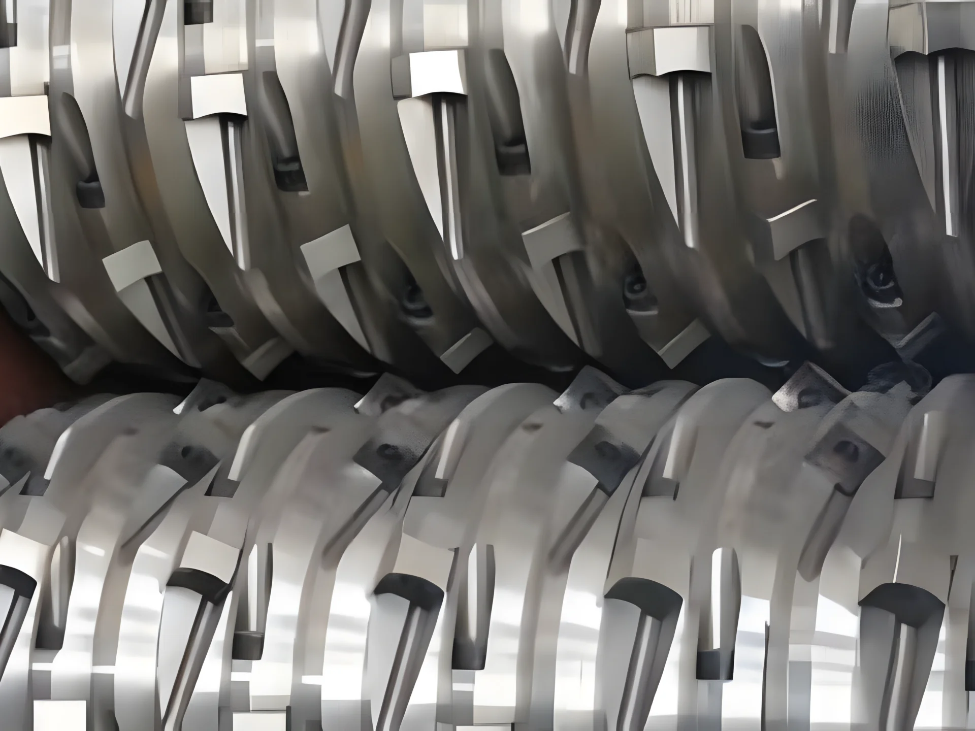 The material is shredded by a high-torque, slow-speed cutting rotor. The shredded pieces fall through a screen, ensuring a consistent output size.